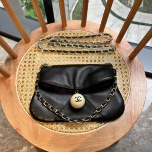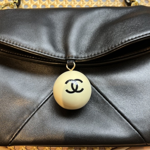 CHANEL LEATHER CUE BALL FOLDOVER BAG BLACK 26CM