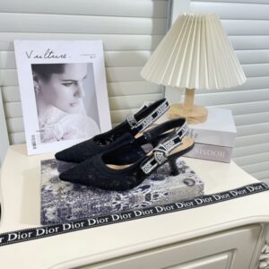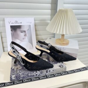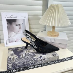 DIOR J’ADIOR SLINGBACK PUMP TRANSPARENT MESH EMBROIDERED WITH BUTTERFLY MOTIF BLACK KDV039BYE S900
