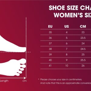 | Size Shoes | 35 EU – 4 US – 23 Cm – 9 In., 36 EU – 5 US – 23.5 Cm – 9.2 In., 37 EU – 6 US – 24 Cm – 9.4 In., 38 EU – 7 Us – 24.5 Cm – 9.46 In., 39 EU – 8 US – 25 Cm – 9.8 In., 40 EU – 9 US – 25.5 Cm – 10 In.  |