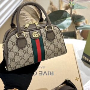 GUCCI OPHIDIA GG MINI TOP HANDLE BAG BROWN 22CM ‎724606 9C2SG 8746