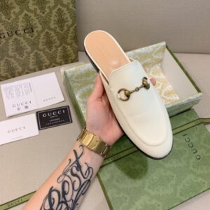 GUCCI PRINCETOWN LEATHER SLIPPER WHITE 423513 C9D00 9022