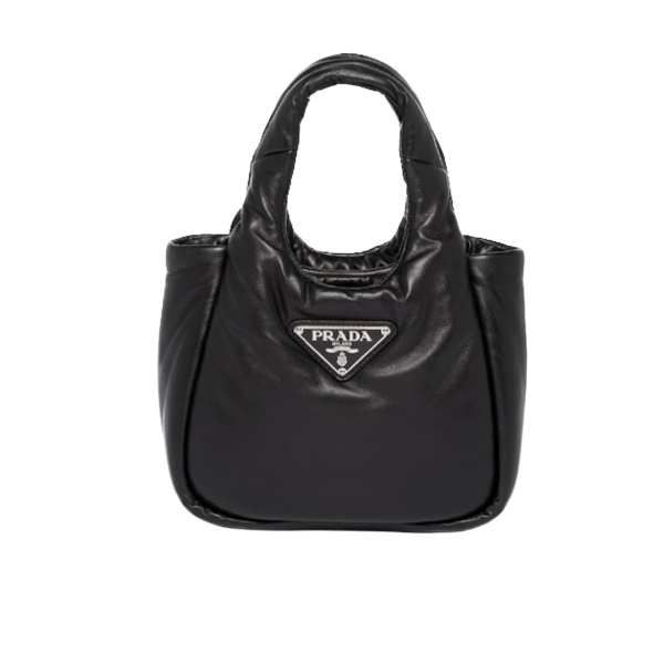 PRADA PADDED SOFT LEATHER BAG GERANIUM BLACK 19CM 1BA359 2DYI F0002 V OVO