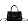 The enameled metal triangle logo, an historic element reinterpreted each season on designs with contemporary charm, decorates the front.