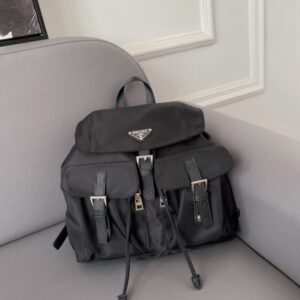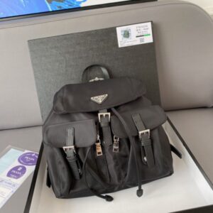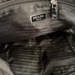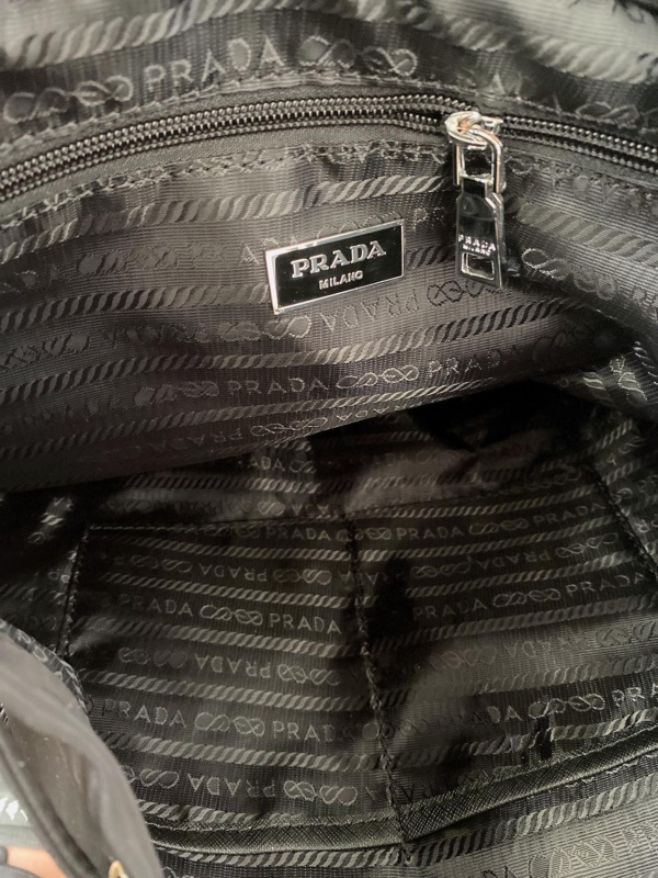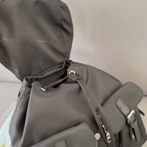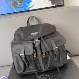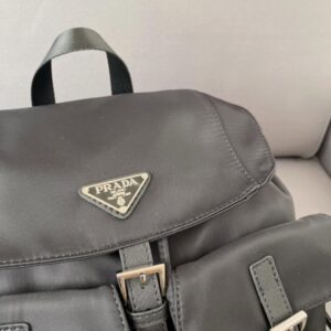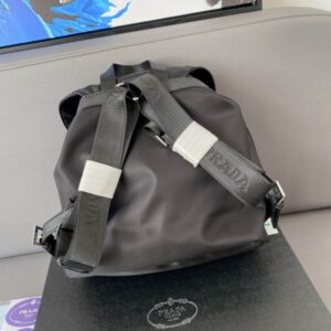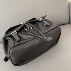 A sustainable evolution of the industrial fabric that is a Prada hallmark, and Saffiano leather details.